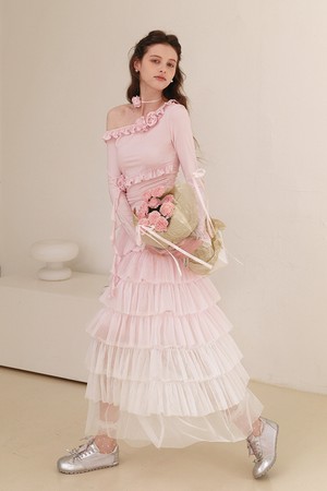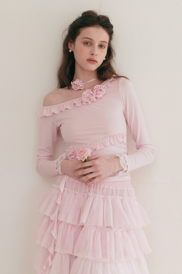 Rose frill off-shoulder blouse