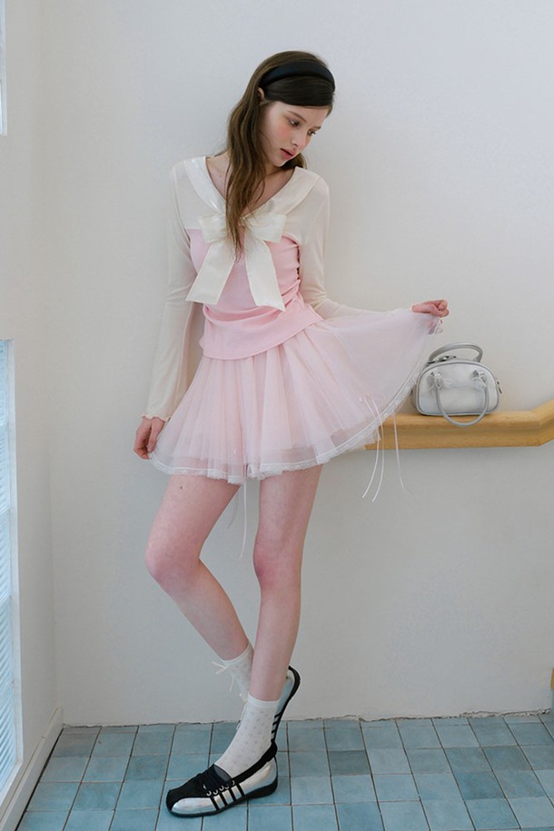 Ribbon mesh banding skirt