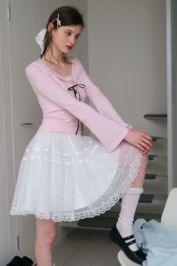Lace ribbon flare sleeve top