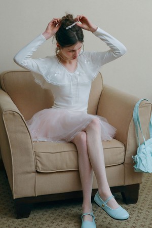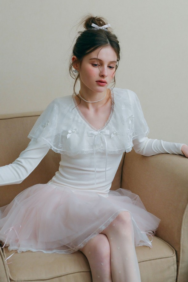 Bow lace slim long sleeve top