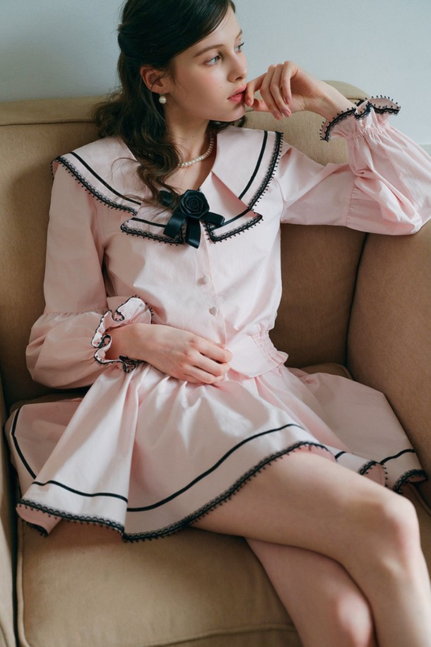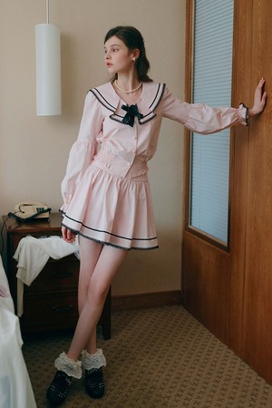 Pink sailor collar puff sleeve blouse