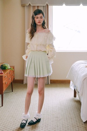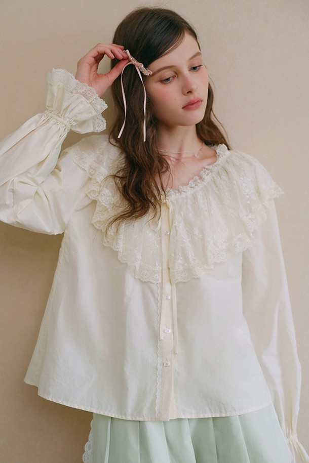 Lace trumpet sleeve button blouse