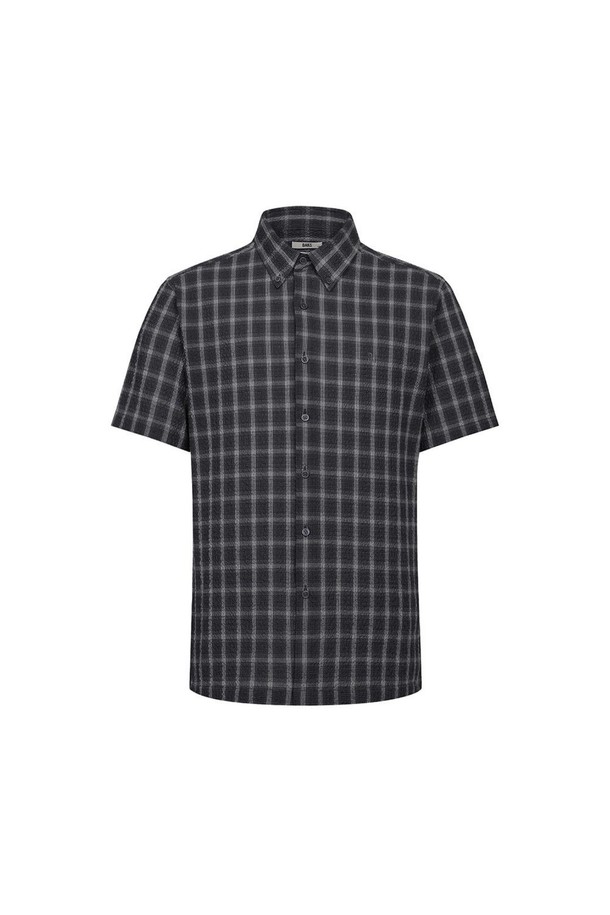 면혼방 미디움체크 캐주얼 스트레치 반팔셔츠
