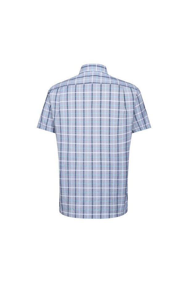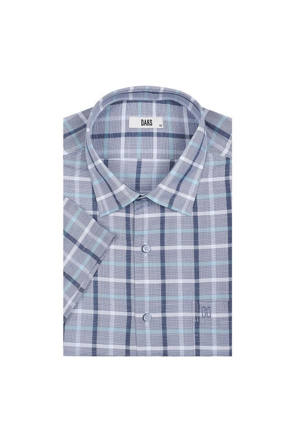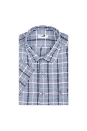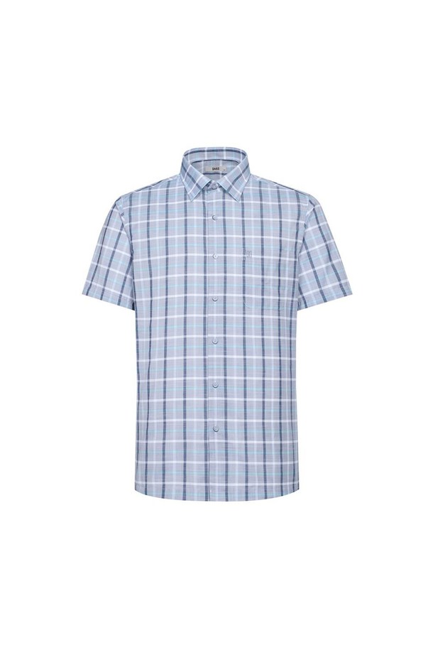 린넨혼방 미디움체크 캐주얼 반팔셔츠