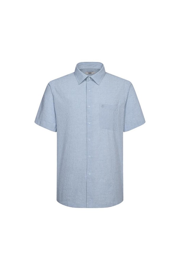 린넨혼방 마이크로체크 스트레치 반팔셔츠