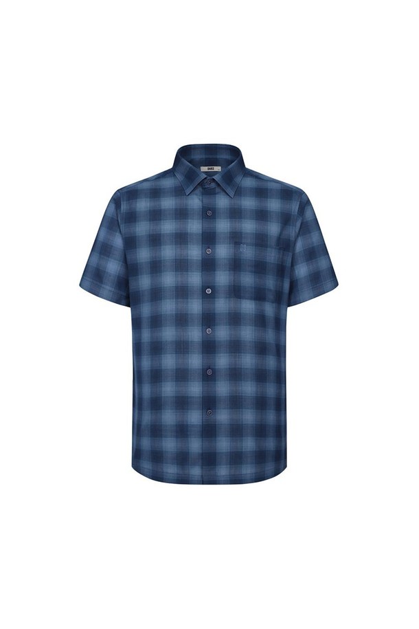 울혼방 미디움체크 캐주얼 반팔셔츠