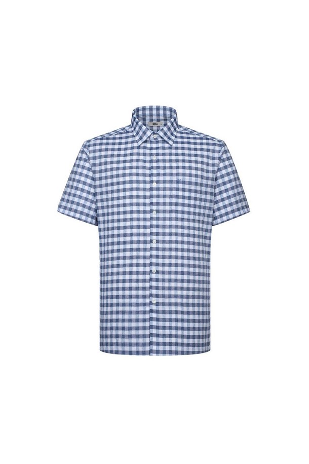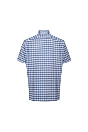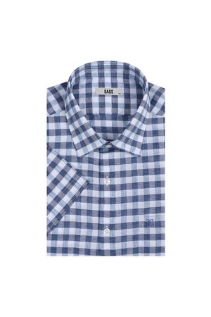 린넨혼방 스몰체크 캐주얼 반팔셔츠