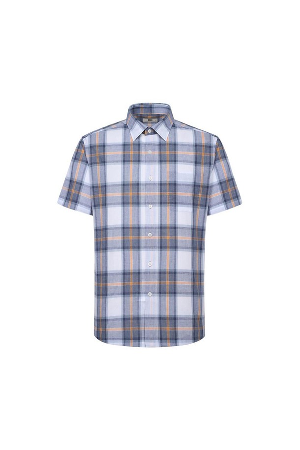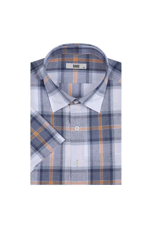 린넨혼방 미디움체크 캐주얼 반팔셔츠