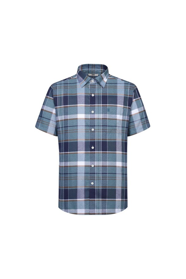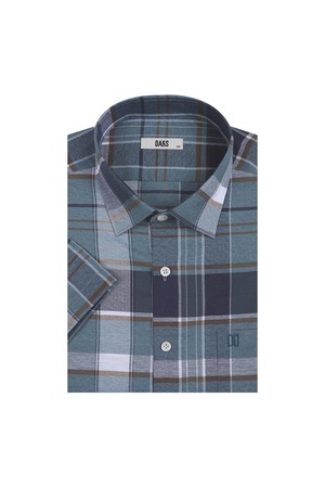 린넨혼방 미디움체크 캐주얼 반팔셔츠