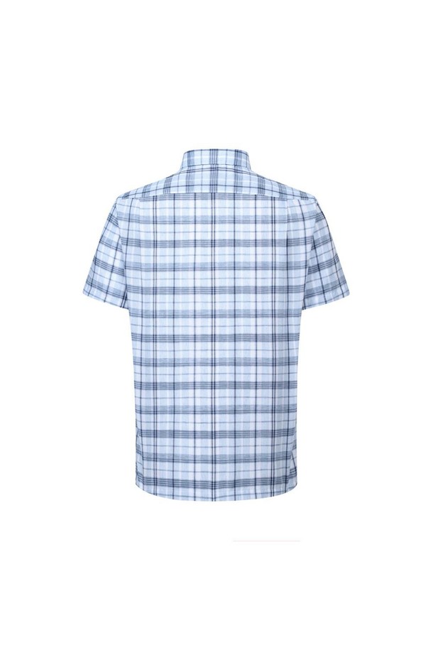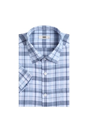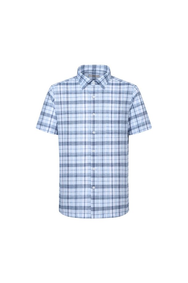 린넨혼방 미디움체크 캐주얼 반팔셔츠