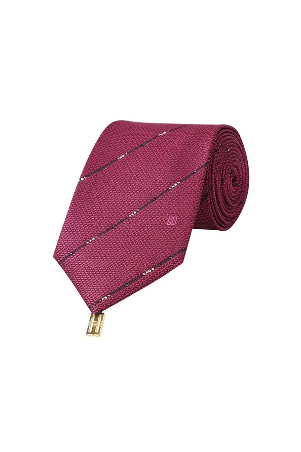 실크혼방 사선 큐빅 스트라이프 넥타이 핑크