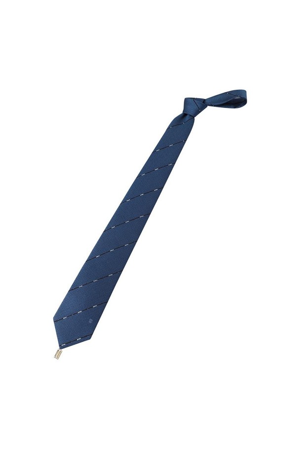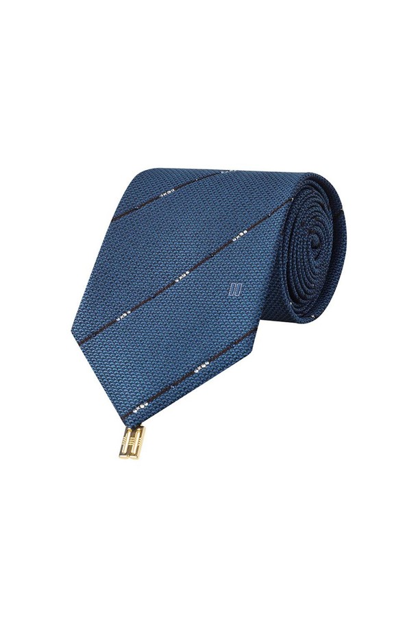 실크혼방 사선 큐빅 스트라이프 넥타이 블루