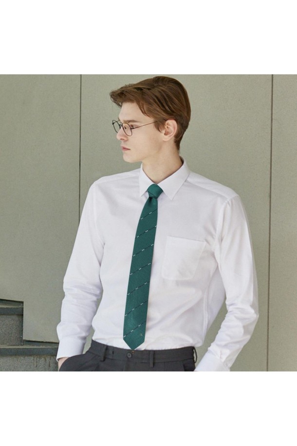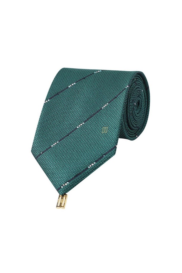 실크혼방 사선 큐빅 스트라이프 넥타이 그린