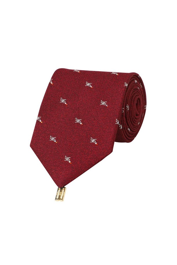 실크혼방 올오버 큐빅 패턴 넥타이 레드