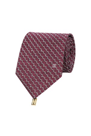 실크혼방 큐빅 패턴 올오버 넥타이 레드