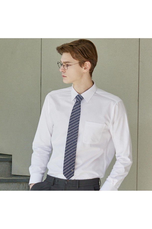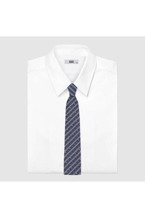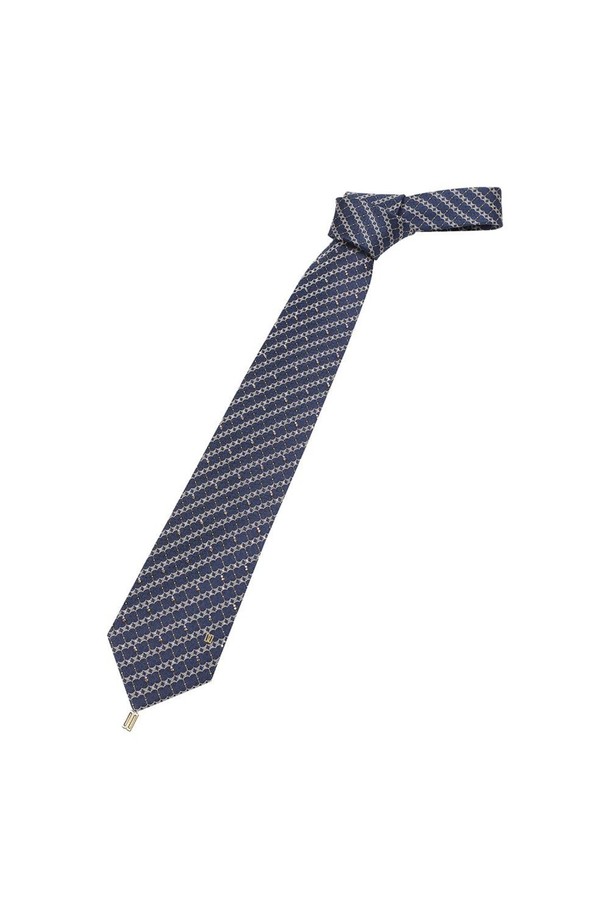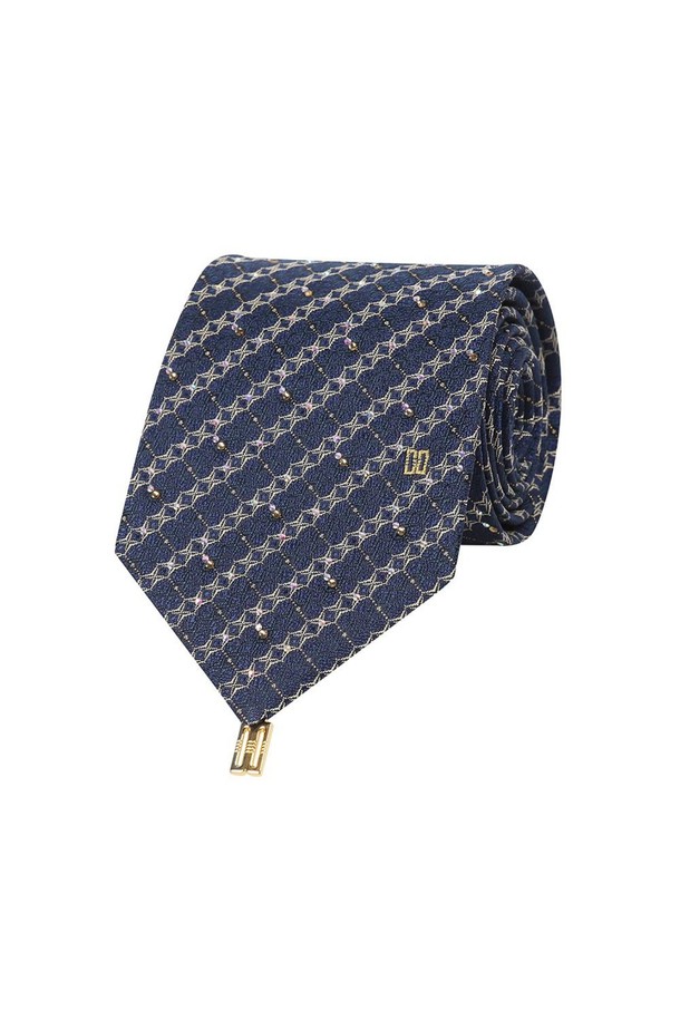 실크혼방 기하학 자카드 큐빅 패턴 올오버 넥타이 네이비