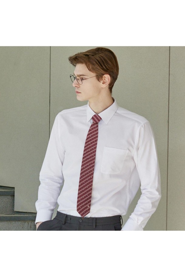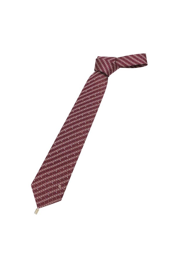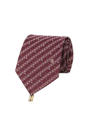 실크혼방 기하학 자카드 큐빅 패턴 올오버 넥타이 레드