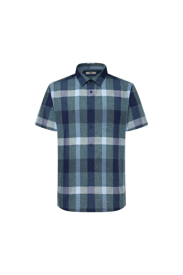 린넨혼방 빅체크 캐주얼 반팔셔츠 레귤러핏