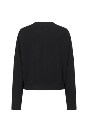 WOMEN'S LAMBSWOOL CREW NECK KNIT CARDIGAN - BLACK