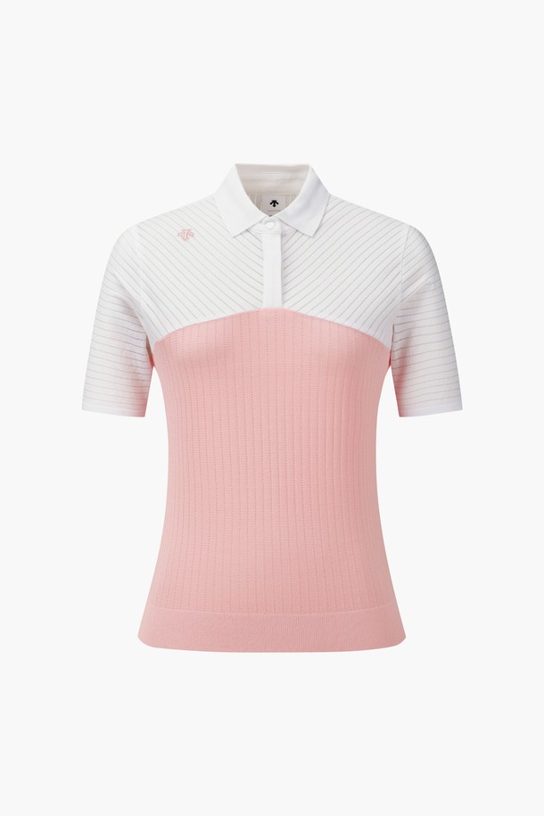 여성 컬러블럭 카라 반팔 풀오버 DR22WFKP41