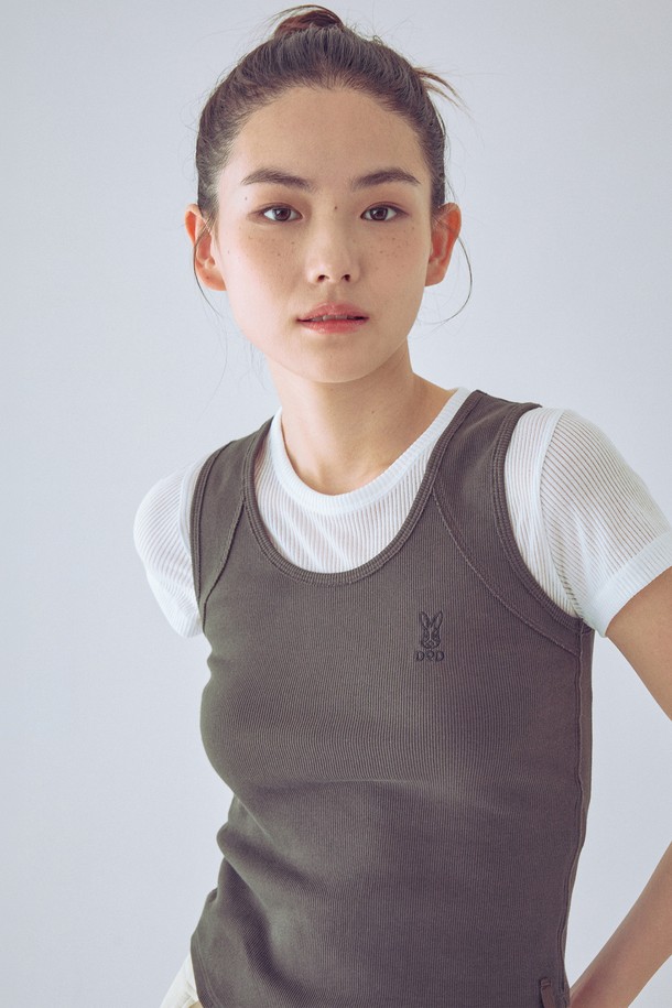 여성) 골지 슬리브리스 티셔츠(BROWN)
