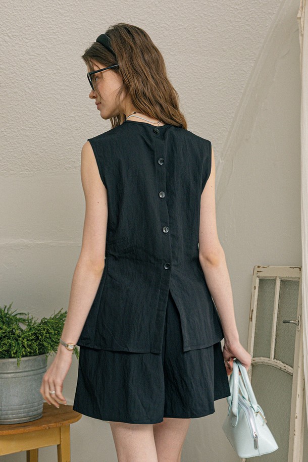 Waist slim top and pants set_BLACK