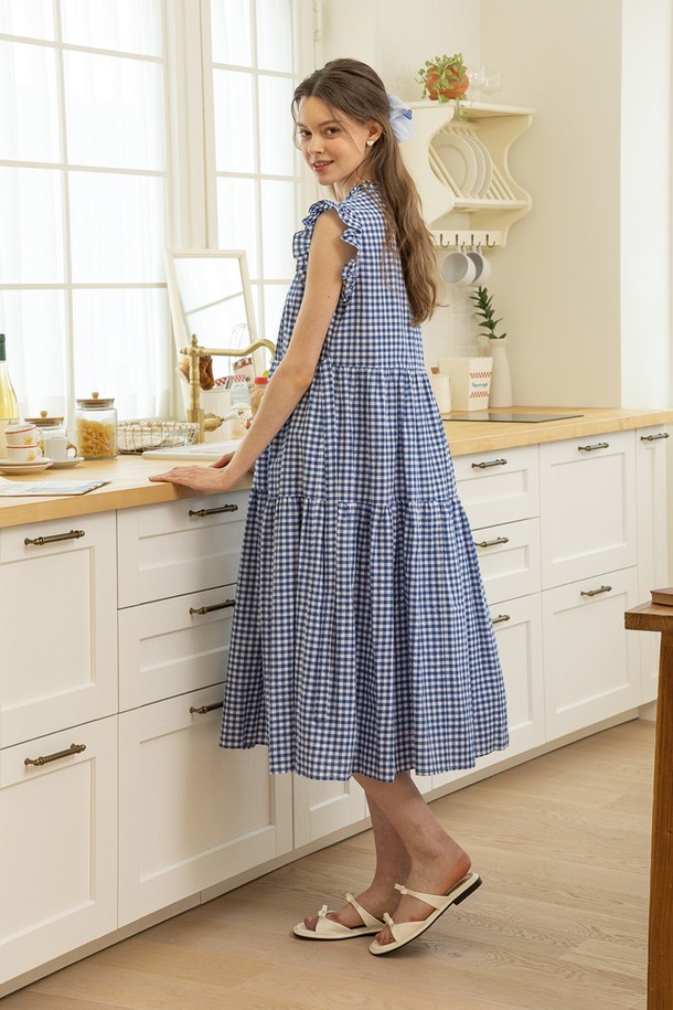 Blue check lace dress