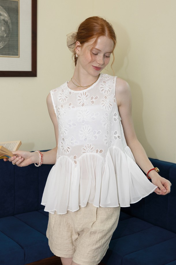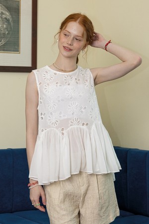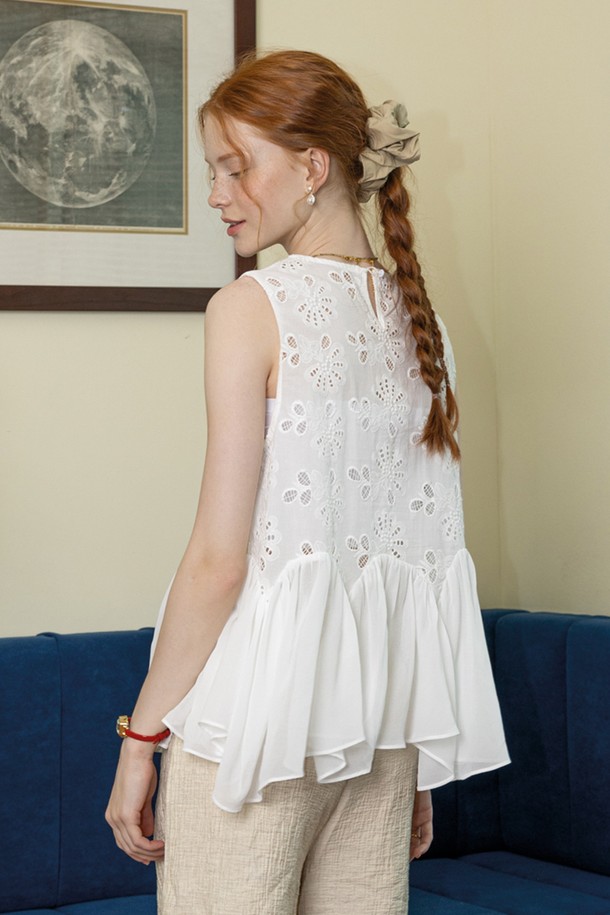 Mesh hem sleeveless top_WHITE