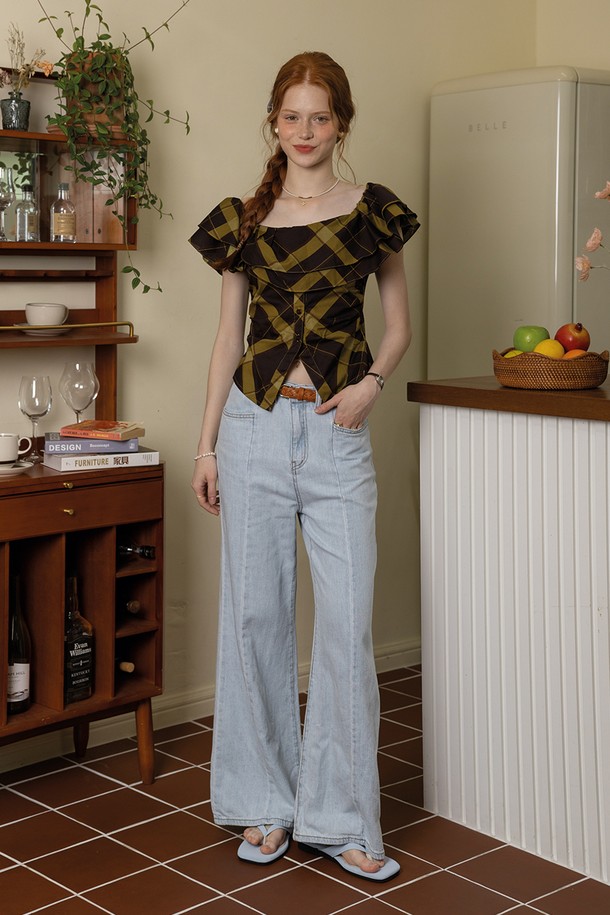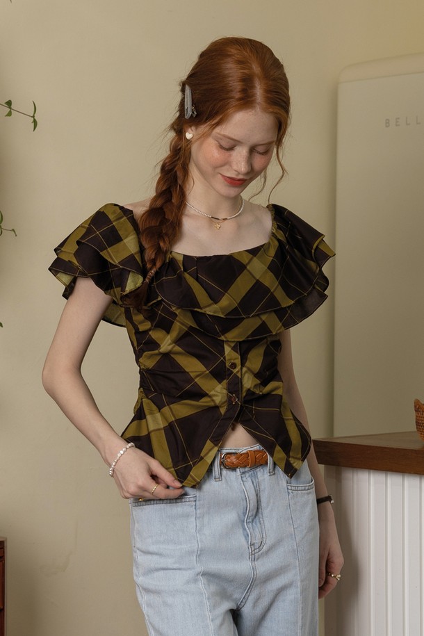 Plaid ruffle charm top_GREEN