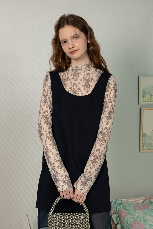 Retro pattern long sleeves top_BEIGE