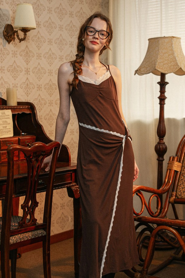 Lace brown camisole dress