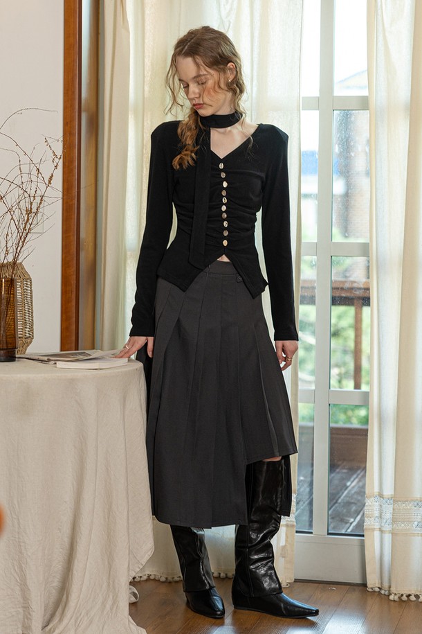 Elegant vertical striped skirt_GRAY
