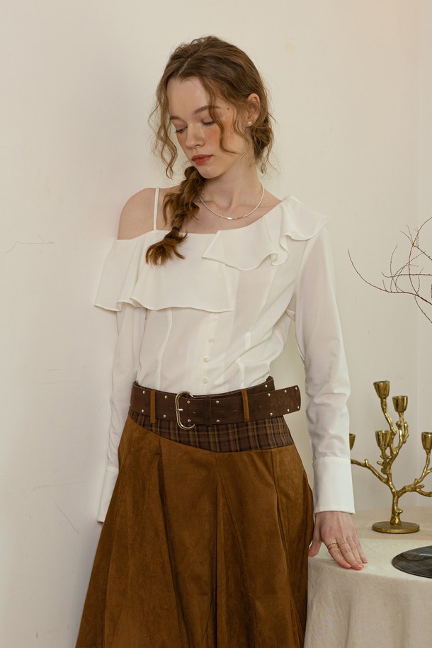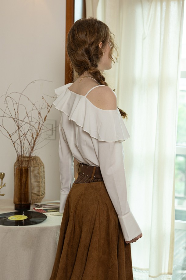 Off-the-shoulder long-sleeved shirt_WHITE