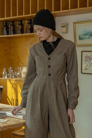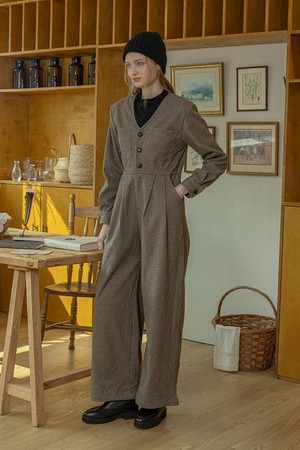 V-neck formal jumpsuit_BROWN