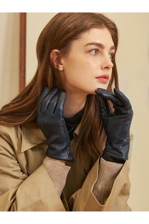 지니 여성 가죽장갑 - 네이비