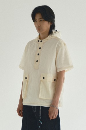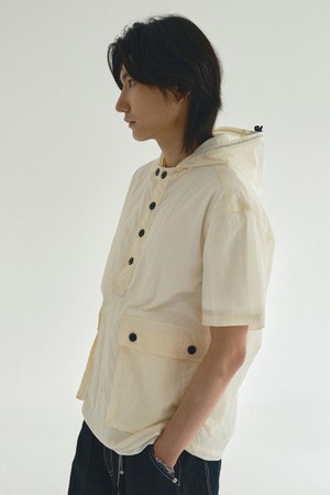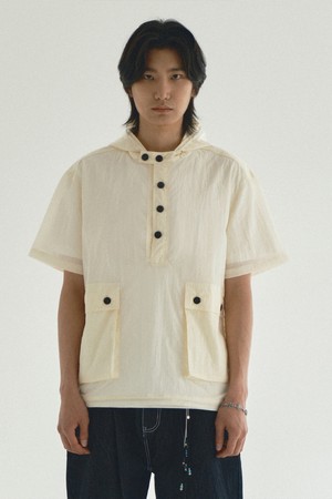 나일론 후드 반팔 풀오버_아이보리