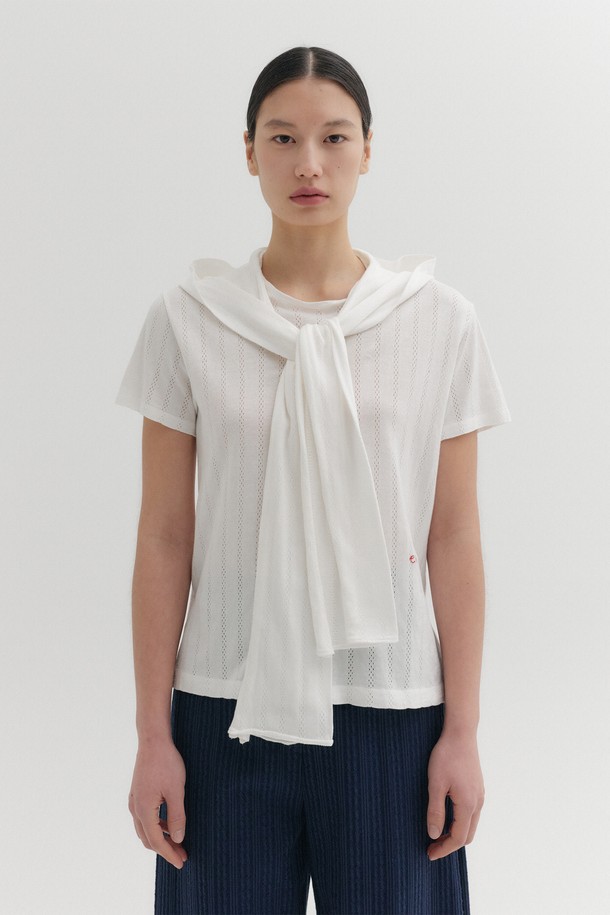 후디 숏 슬리브 티셔츠 - 아이보리