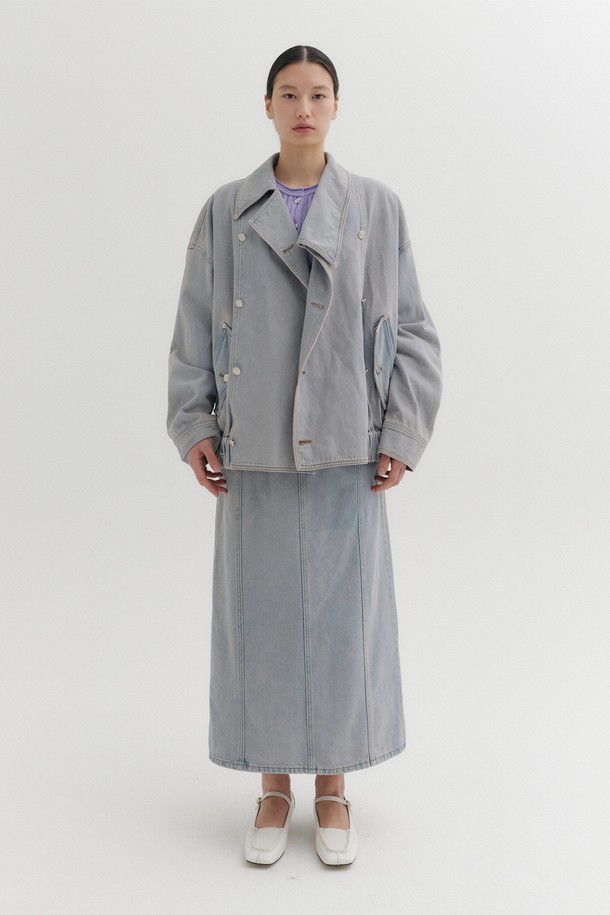 에이라인 데님 스커트 - 핑크 워시드