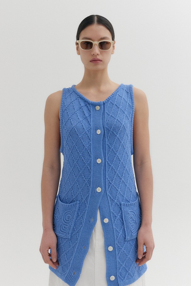 텍스처 롱 베스트 - 스카이 블루