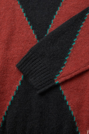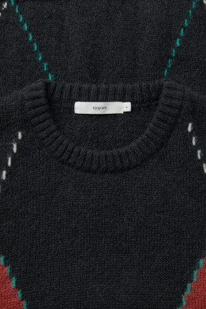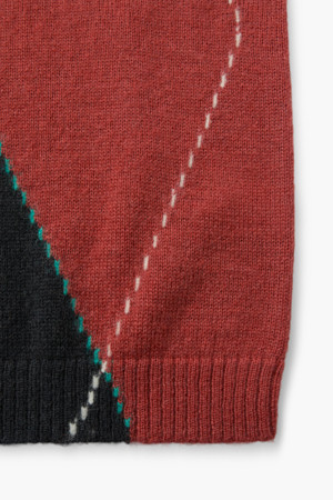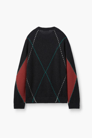 컬러 블럭 아가일 라운드넥 니트 풀오버