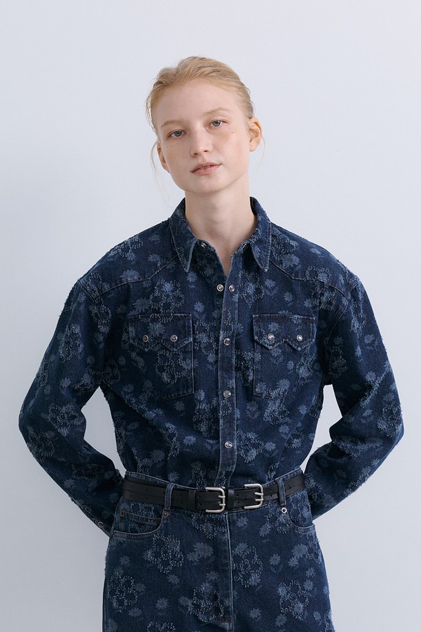FLOWER WESTERN SHIRT - TIN BLUE