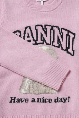Graphic Wool Mix Poodle Crewneck - Chalk Pink