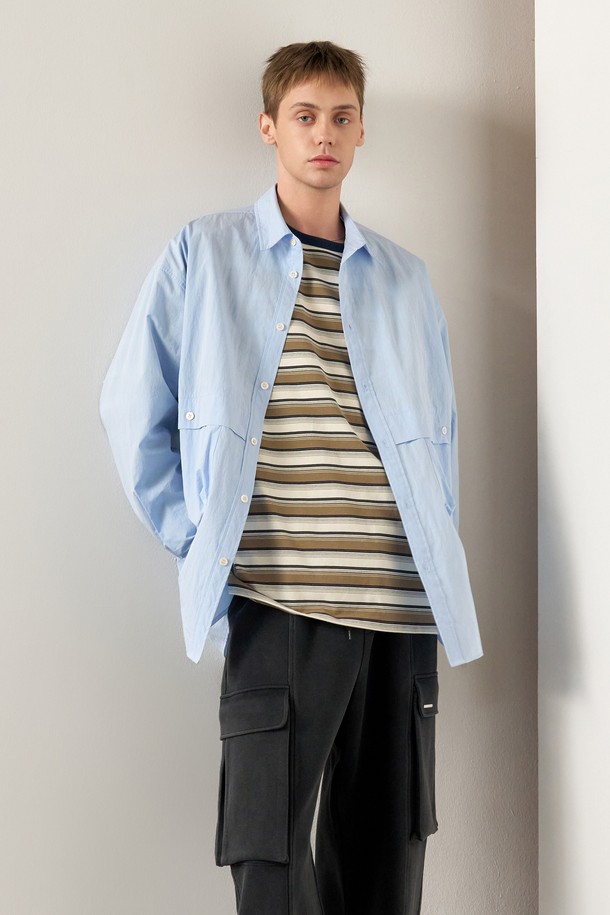 [25SS] UNISEX 루즈핏 포켓 나일론 셔츠 [SKY BLUE] / SBE1U03005