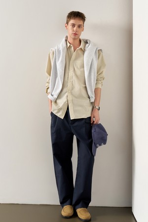 [25SS] MAN 플리티드 와이드 팬츠 [NAVY] / SBE1M11002