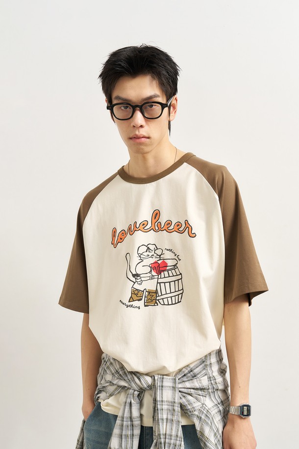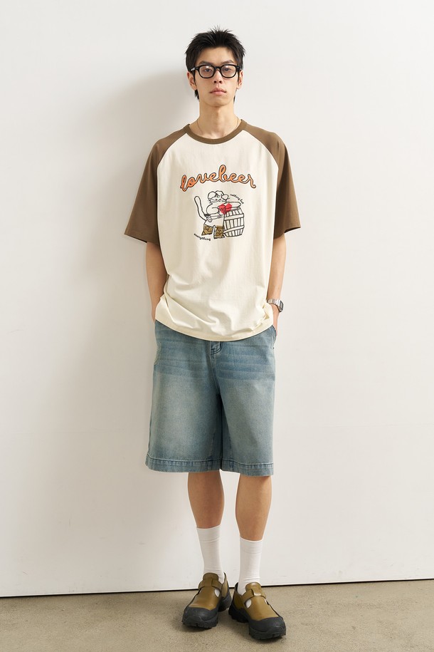 [25SS] UNISEX 래글런 웨스턴 캣 그래픽 반팔티 [CREAM] / SBE2U01008