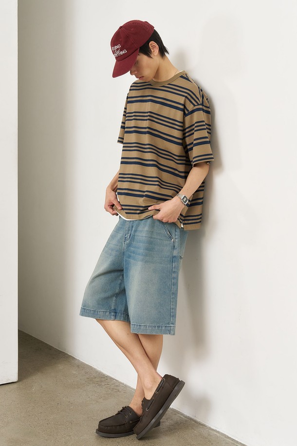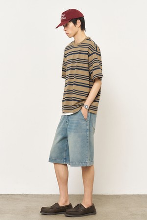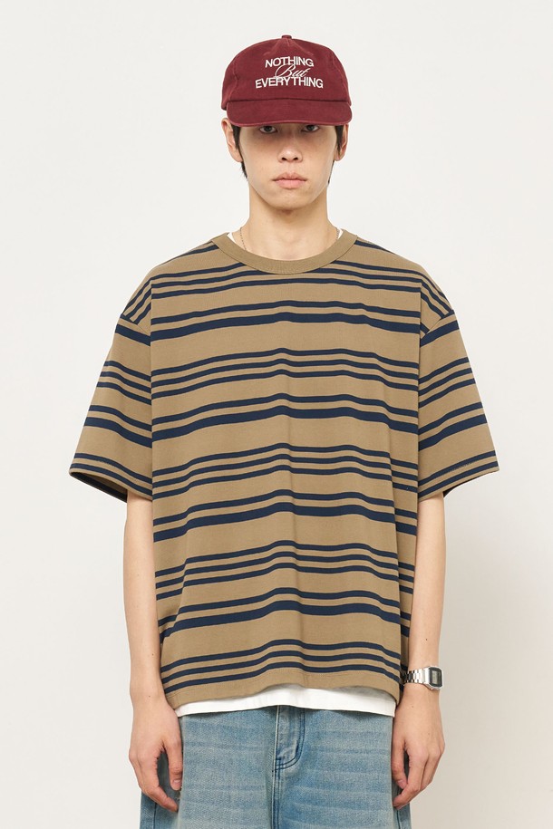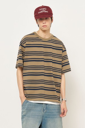 [25SS] MAN 스트라이프 루즈핏 반팔티 [KHAKI] / SBE2M01014