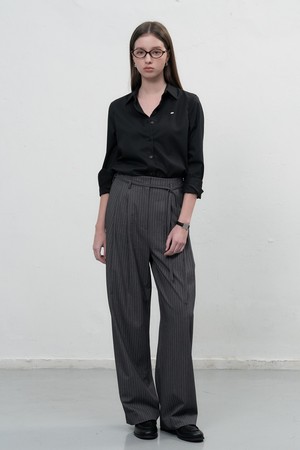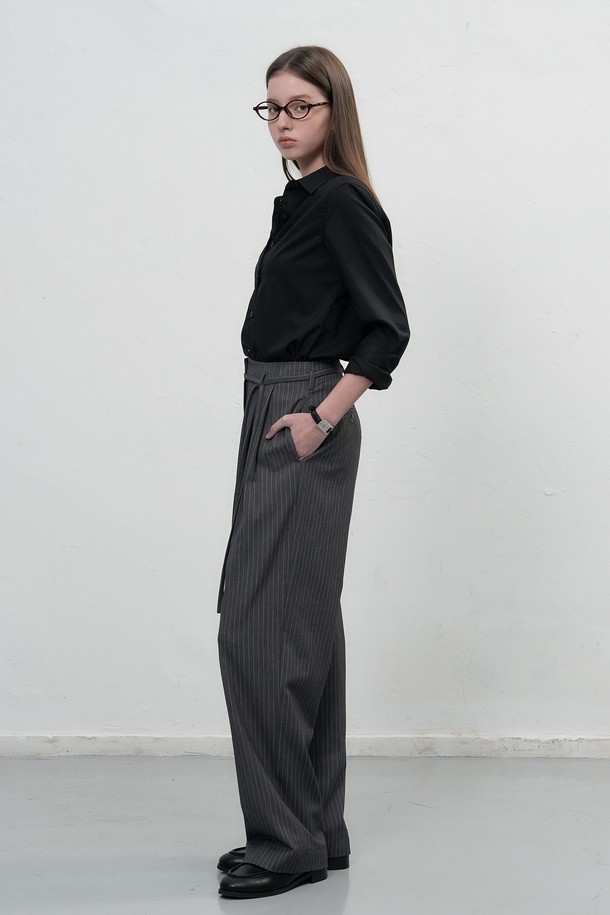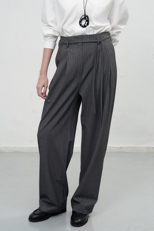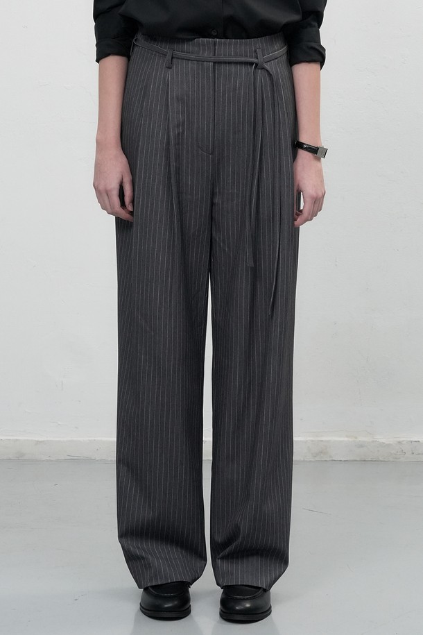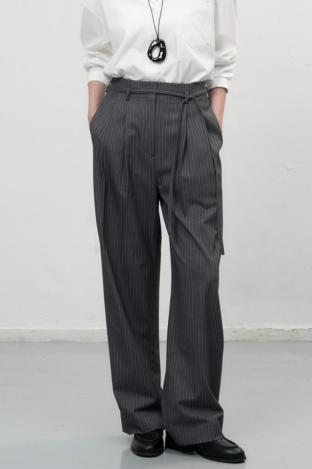 [25FW] WOMAN 벨티드 스트라이프 투턱 와이드 슬랙스 [2COL] / WBE3L11504