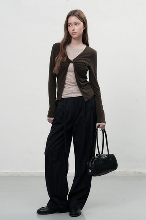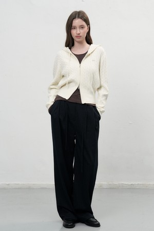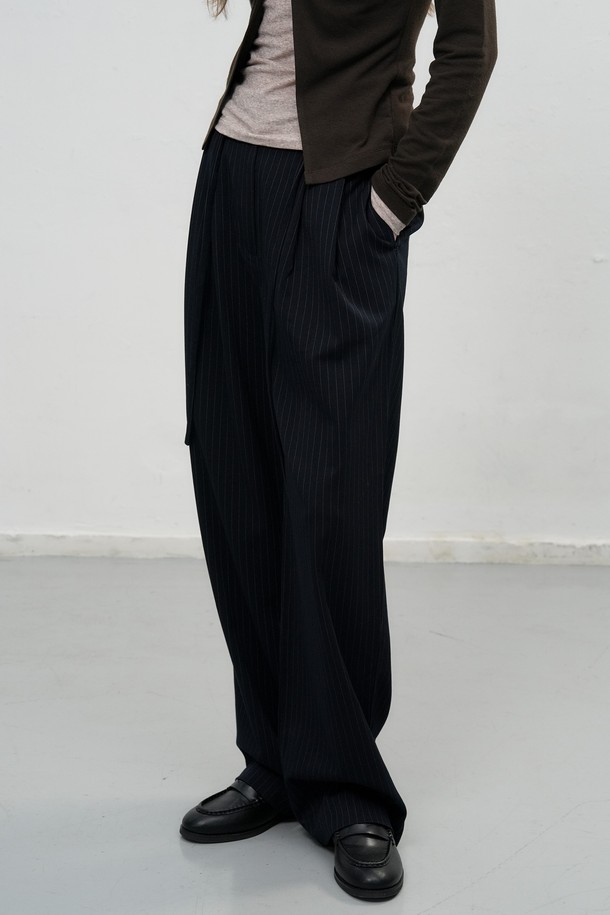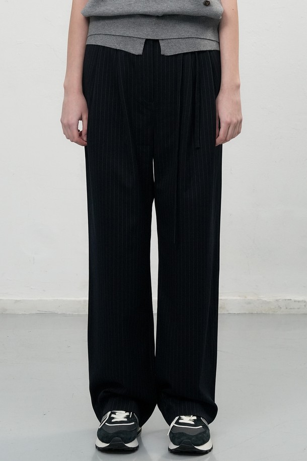 [25FW] WOMAN 벨티드 스트라이프 투턱 와이드 슬랙스 [2COL] / WBE3L11504