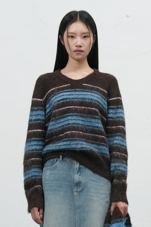 [25FW] WOMAN 헤어리 스트라이프 루즈 풀오버 [3COL]/WBE4L05534