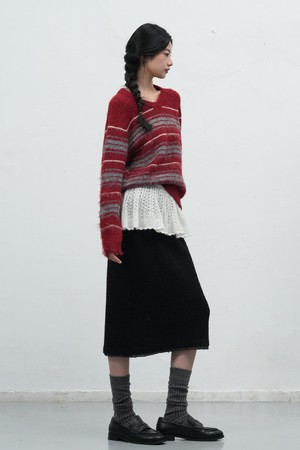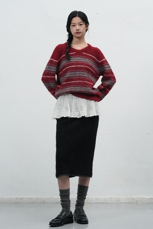 [25FW] WOMAN 헤어리 스트라이프 루즈 풀오버 [3COL]/WBE4L05534